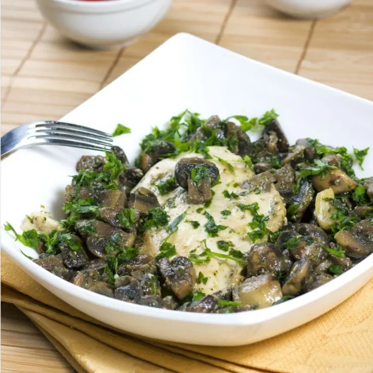 This Creamy Chicken Bake recipe has become one of my favorite comfort food meals when I don’t have a lot of time to spend in the kitchen. Tender pieces of chicken topped with fresh spinach, mushrooms and two different types of cheese and then baked to perfection.